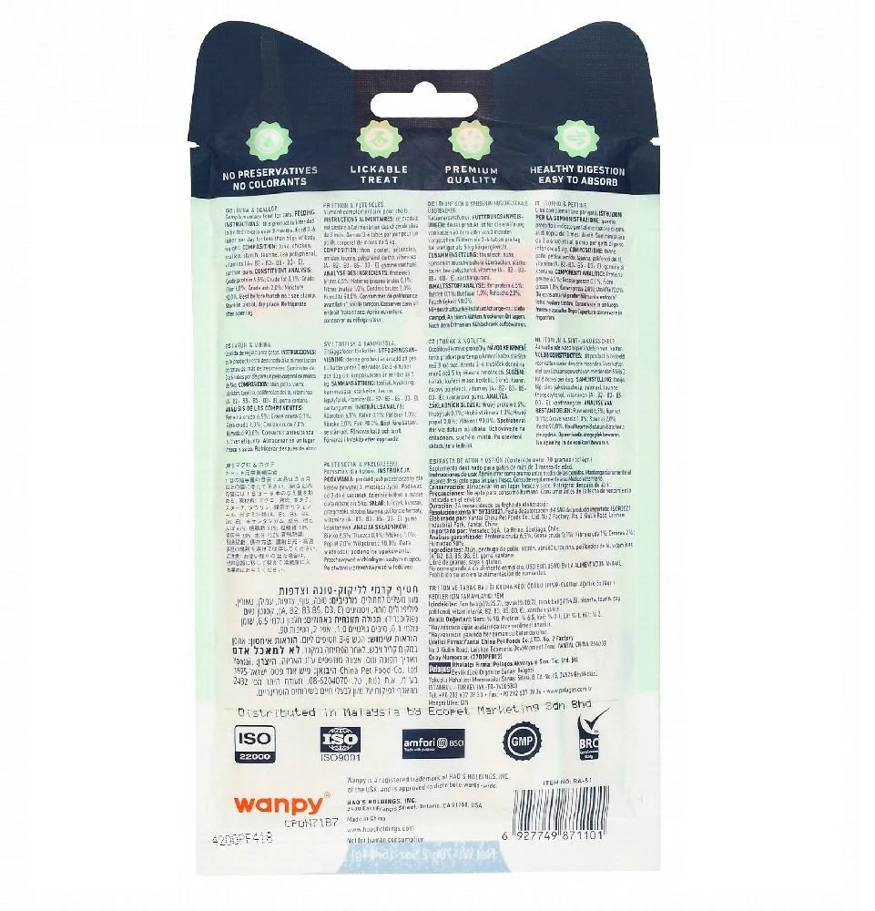 Ingredients: Tuna , Scallop , starch, taurine, tea polyphenol, vitamins (A, B 2 , B 3 , B 5 , D 3 , E), xanthan gum.